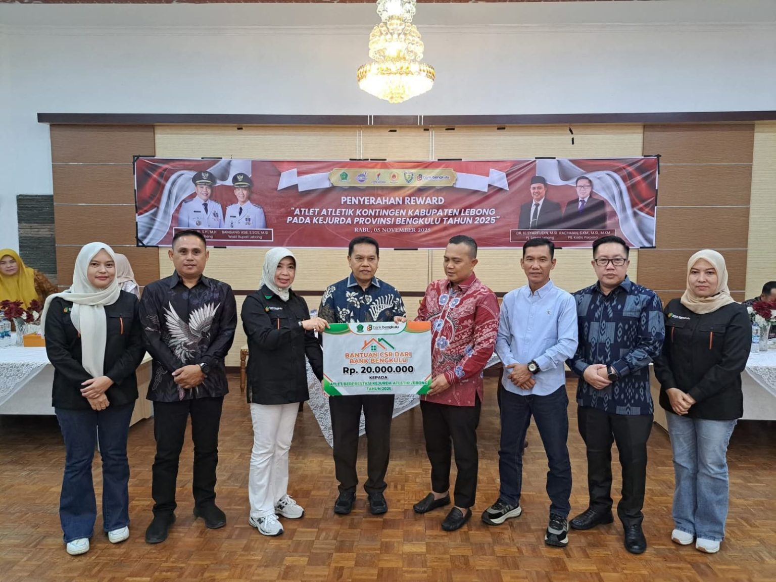“Reward Rp20 juta ini adalah bentuk apresiasi sekaligus penyemangat agar ke depan para atlet terus berprestasi dan membawa nama baik Kabupaten Lebong,” tambahnya.